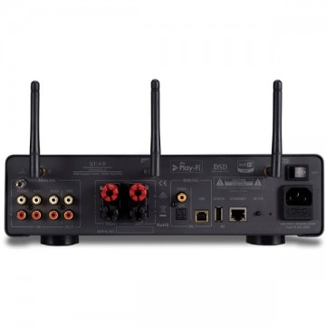 2 x 200W RMS (8 ohm). Bluetooth aptX. DAC Texas Instruments 32bit/384KHz. MQA. Entradas XLR y RCA, 3 ópticas y 3 coaxiales. Phono MM. Salida Subwoofer. PC-USB 32bit/384KHz. Roon ready. A/B speakers. Mando a distancia