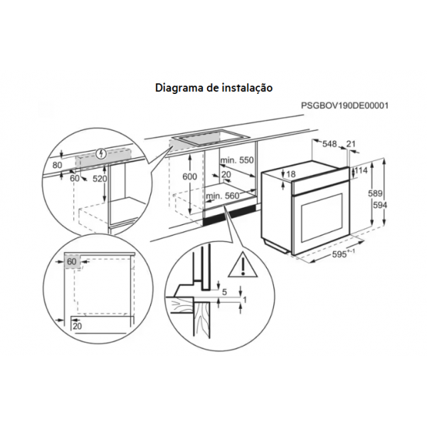 Dimensões de encastre (AxLxP), em mm: 590x560x550